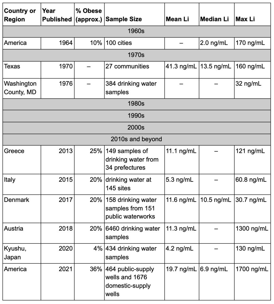 Second, A Chemical Hunger already documents a lot of correlational evidence for contaminants in general, and for a few contaminants in particular, especially lithium. If you already find this evidence compelling, it’s hard to imagine that one more piece of correlational evidence will do anything for you. And if you don’t find our review convincing, it’s hard to imagine that another piece of correlational evidence will change your mind.
