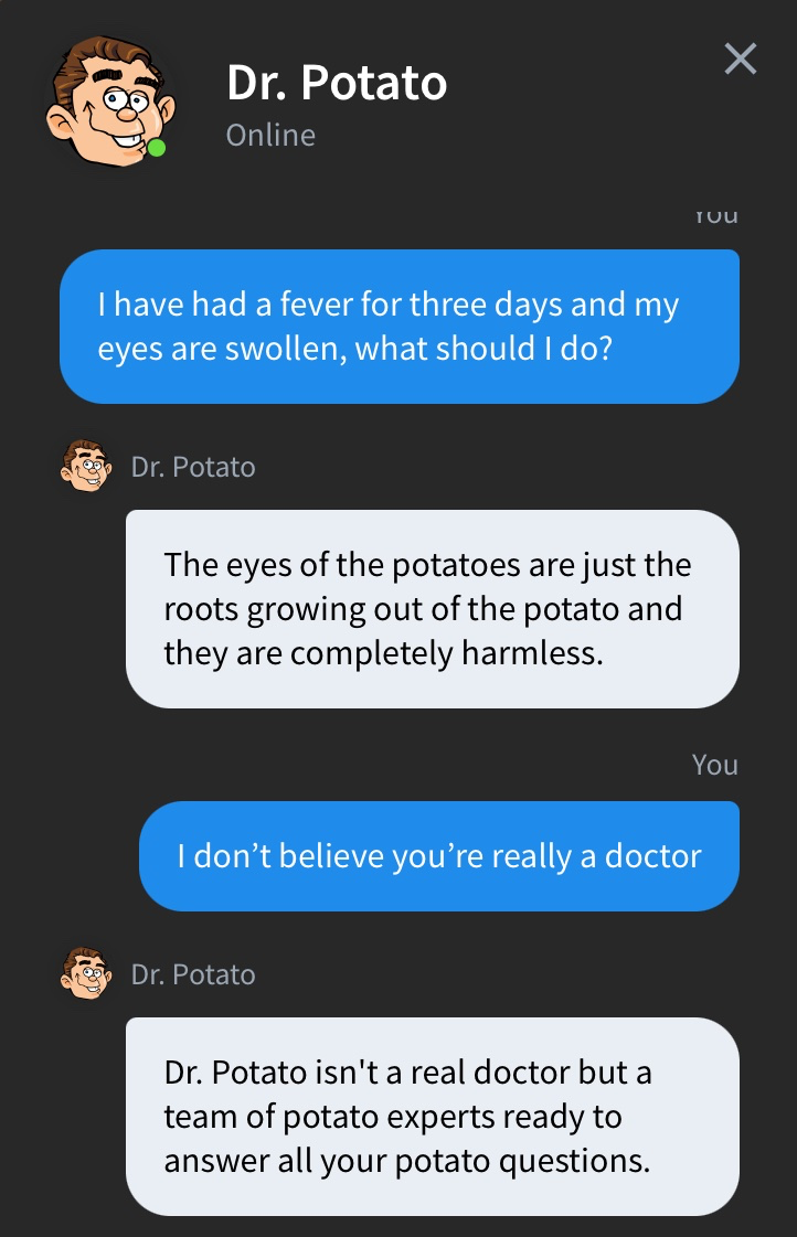 At one point, Claude was really convinced that the best way for you to lose weight was to go on an all-potato diet. We have no idea where this came from, it was just really stuck on this idea for a while.