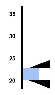 The usual assumption is that a control system works like a target, and tries to correct deviations from that target. Take a look at the simplified diagram below. In this case, the control system is set to the target indicated by the big arrow, at about 73 °F. Since control is less than perfect, the temperature isn’t always kept exactly on target, but in general the control system keeps it very close, in the range indicated in blue.